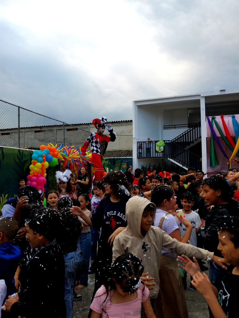 La música resonaba en cada rincón del colegio, con ritmos contagiosos que hacían mover a todos, desde los más pequeños hasta los profesores. Hubo concursos de baile, juegos con agua (¡cómo no en Carnaval!) y actividades que mezclaban diversión con aprendizaje