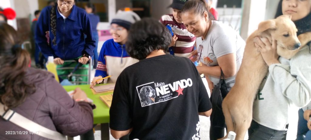 El pasado domingo 29 de octubre, se llevo a cabo la primera jornada de atención para animales de compañía, desarrollada por esta casa de estudios, Misión Nevado y Huellitas Peluquería y Spa. La jornada contó con profesionales veterinarios, los cuales valoraron y aplicaron vacunas contra la rabia y desparasitante a más de cien (100) animales de compañía. Durante la actividad, la empresa Huellitas dono a los asistentes, su producto estrella, el shampoo para todo tipo de pelo y raza. En palabras de sus promotores, el Prof. Ernesto Villamizar y la Prof. Valeria Monsalve, “la actividad fue todo un éxito“. Para los miembros de la Misión Nevado, la actividad permitió observar la integración de la familia con los mas peluditos de la casa. Al finalizar la actividad, el Profesor Ernesto manifestó que para el mes de diciembre de este año, realizaran la 2da jornada, y esperan llegar a mas animales de compañía.